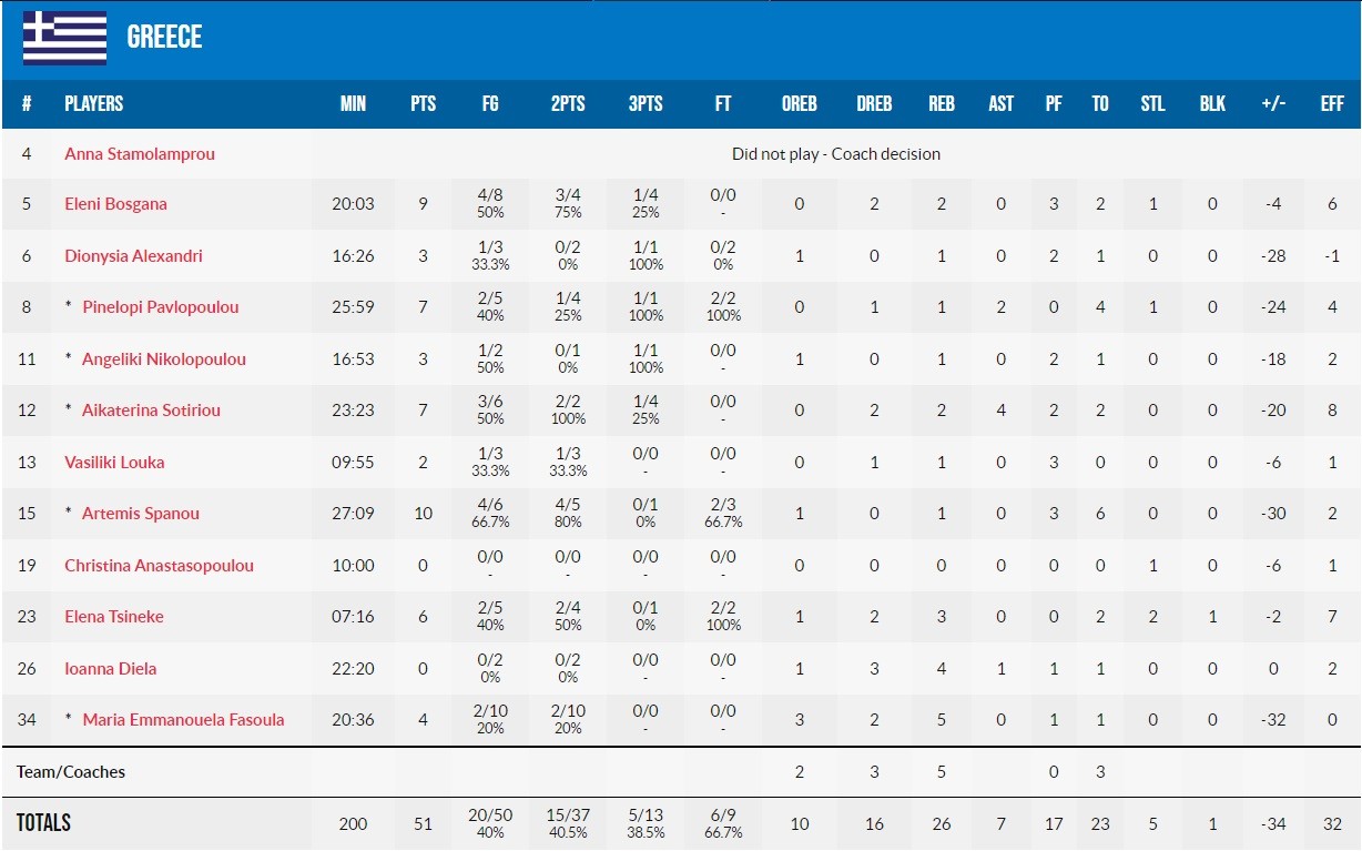 *H Eλλάδα αγωνίστηκε χωρίς την Άννα Νίκη Σταμολάμπρου, η οποία είναι τραυματίας.