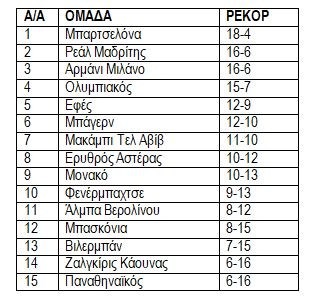 Να υπενθυμίσουμε ότι η Εφές έχει το πλεονέκτημα σε περίπτωση ισοβαθμίας με τον Ολυμπιακό (+17 από τους δύο αγώνες). Κι επίσης οι «ερυθρόλευκοι» μειονεκτούν σε περίπτωση ισοβαθμίας με την Ρεάλ (στο +2 οι Ισπανοί).