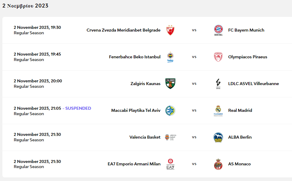 Euroleague: Τα αποτελέσματα και το πρόγραμμα της 5ης αγωνιστικής