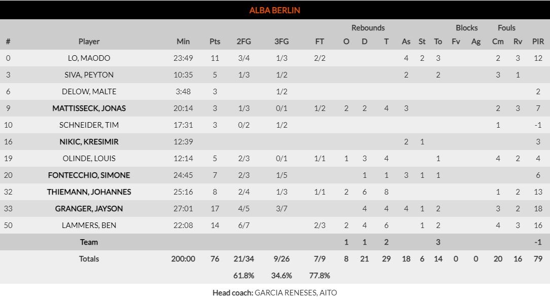 Είναι χαρακτηριστικό ότι η Εφές βρέθηκε στο -12 λίγο πριν το τέλος του πρώτου ημιχρόνου. Μια τρομερή 3η περίοδος με επιμέρους σκορ 26-9 αποδείχθηκε αρκετά για την ομάδα του Αταμάν προκειμένου να ανατρέψει την κατάσταση. Και να φτάσει και πάλι σε θετικό ρεκόρ (10-9) παραμένονυας κοντά στην οχτάδα. Η Άλμπα υποχώρησε στο 7-12.