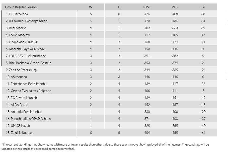 Κατά τ’ άλλα η Μπαρτσελόνα παρέμεινε η μοναδική αήττητη ομάδα στην Euroleague. Κατάφερε να περάσει από την έδρα της Φενέρμπαχτσε με καλάθι του Νίκολα Μίροτιτς στο τελευταίο δευτερόλεπτο. Στον αντίποδα η Ζαλγκίρις παραμένει η μοναδική ομάδα χωρίς νίκη αφού ηττήθηκε στο Τελ Αβίβ από τηνΜακάμπι.