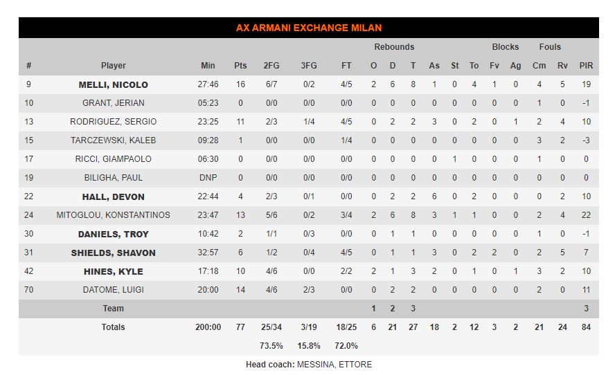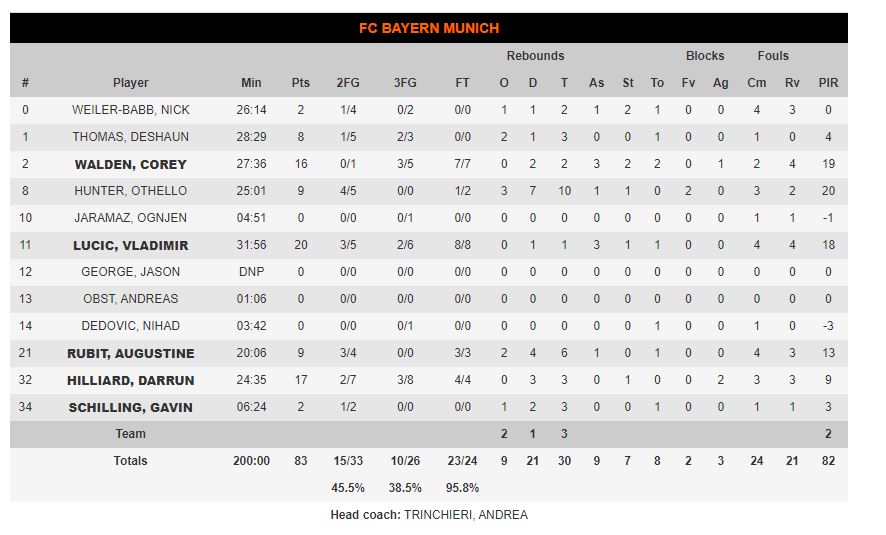 Πολύ μεγάλη νίκη για την Μπάγερν που κατάφερε να σπάσει το αήττητο της Αρμάνι. Οι Λούσιτς, Χίλιαρντ και Γουόλντεν είχαν συνολικά 53 από τους 83 πόντους των νικητών. Ο Μήτογλου ήταν ο κορυφαίος της Αρμάνι.