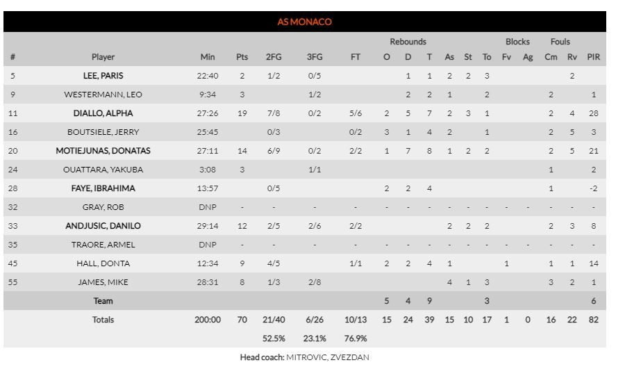 Με κορυφαίο τον πρώην του Λαυρίου, Άλφα Ντιαλό, η Μονακό κατάφερε να προσθέσει ακόμα μια νίκη και να βρίσκεται στο 50%. Και οι δύο ομάδες τα… έσπασαν με 6/26 τρίποντα για τους νικητές και 3/21 για τους Σέρβους.