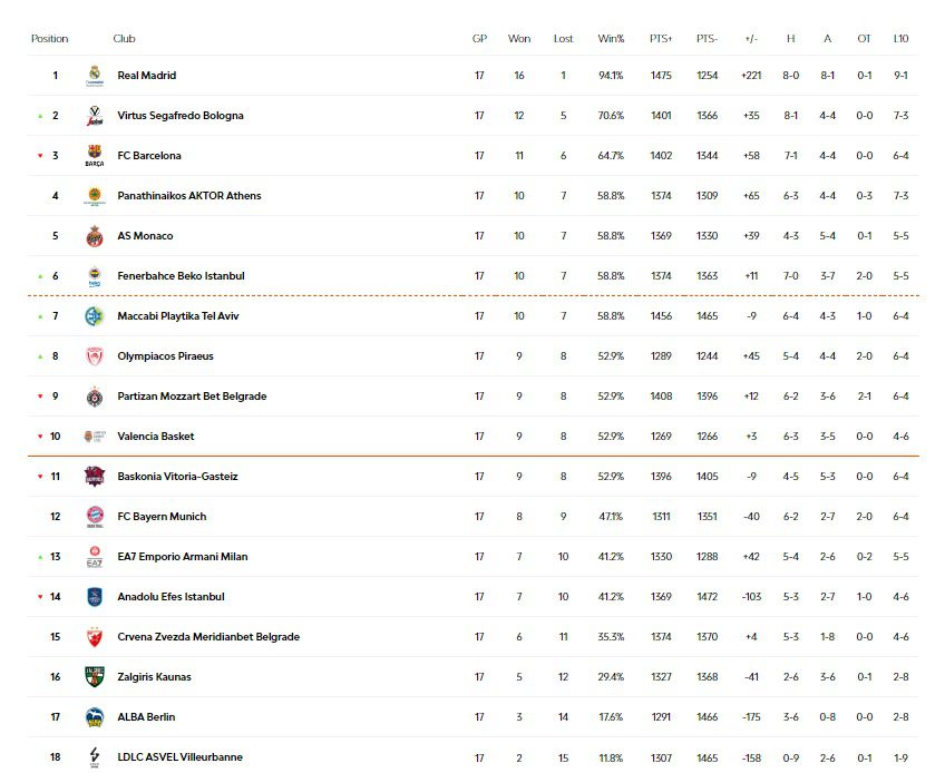 Σε μια από τις πιο αμφίρροπες EuroLeague των τελευταίων χρόνων τόσο ο Ολυμπιακός όσο και ο Παναθηναϊκός κατάφεραν να ολοκληρώσουν τις πρώτες 17 αγωνιστικές του α’ γύρου με θετικό ρεκόρ.