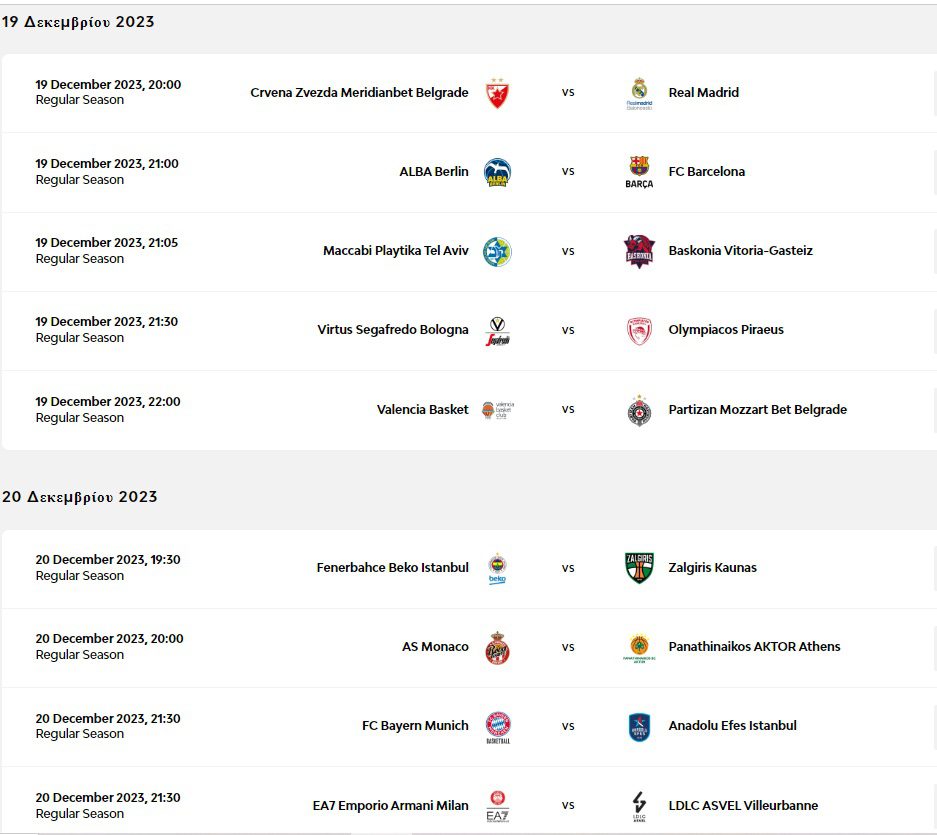 Τα αποτελέσματα της 14ης αγωνιστικής της Euroleague