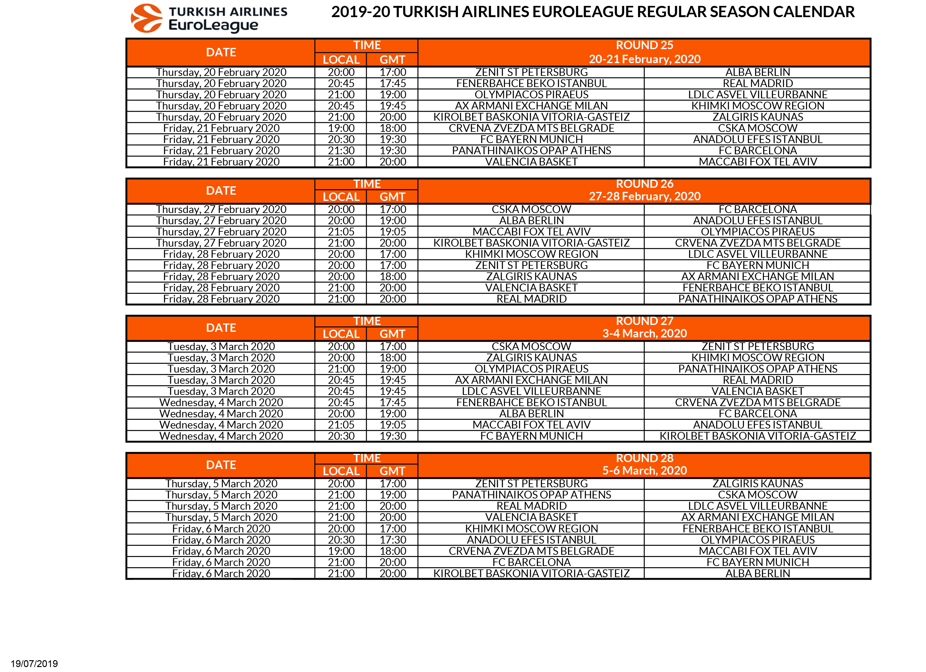 Euroleague: Το πρόγραμμα της σεζόν 2019-2020