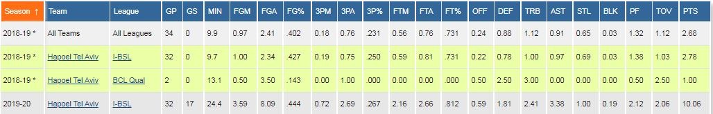 Δείτε τα στατιστικά του Μαντάρ την τελευταία διετία (I-BSL είναι το πρωτάθλημα Ισραήλ και BCL Qual τα προκριματικά του BCL
