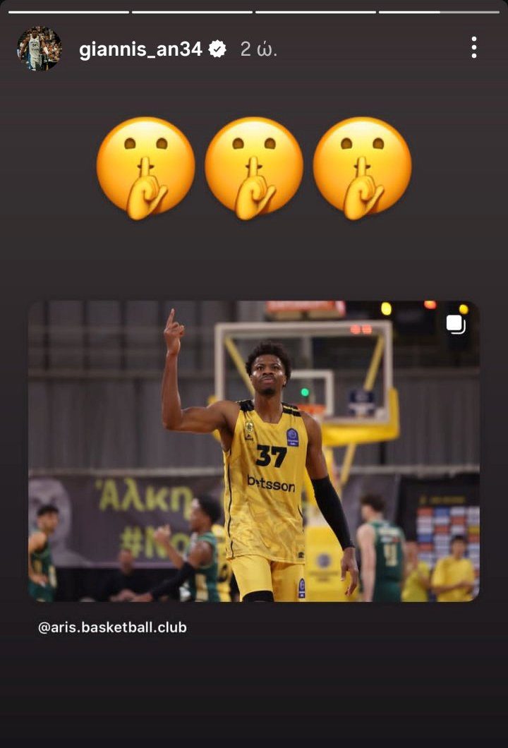 Μετά το τέλος του αγώνα, τη σκυτάλη πήρε ο Γιάννης Αντετοκούνμπο, ο οποίος θέλησε να αποθεώσει δημόσια τον αδερφό του. Ο σταρ του ΝΒΑ ανέβασε story στα social media, στο οποίο απεικονιζόταν ο Κώστας, συνοδεύοντας την εικόνα με χαρακτηριστικά emoji και το μήνυμα της… σιωπής, ζητώντας ουσιαστικά να μιλήσουν οι εμφανίσεις.