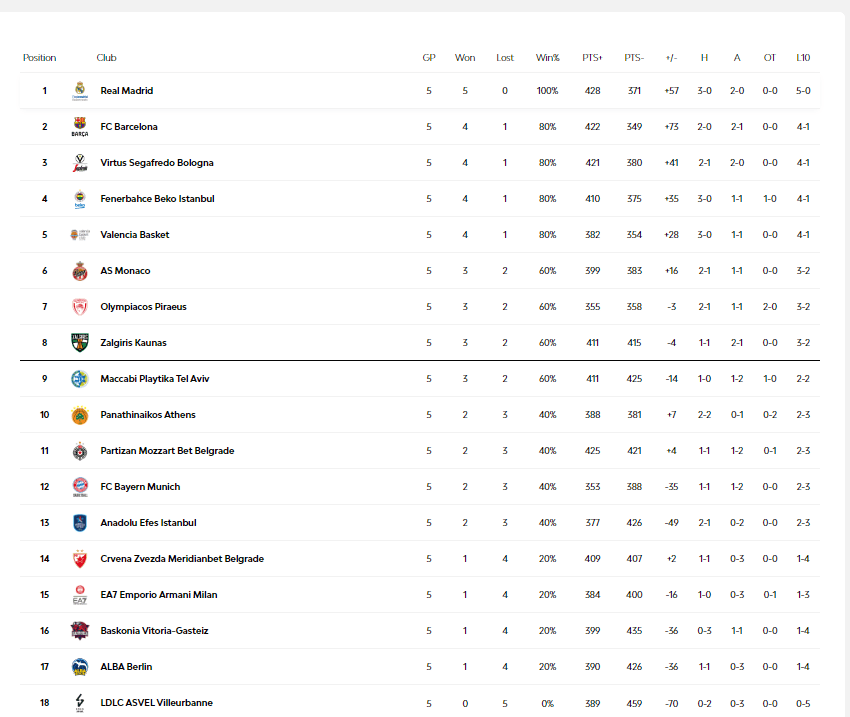Με τη νίκη αυτή η ομάδα του Όντετ Κάτας βελτίωσε το ρεκόρ της στο 3-2 και ανέβηκε στην 9η θέση, αφήνοντας από κάτω τον Παναθηναϊκό που έχει 2-3, ενώ 7ος είναι ο Ολυμπιακός επίσης με 3 νίκες και 2 ήττες όπως οι Ισραηλινοί.