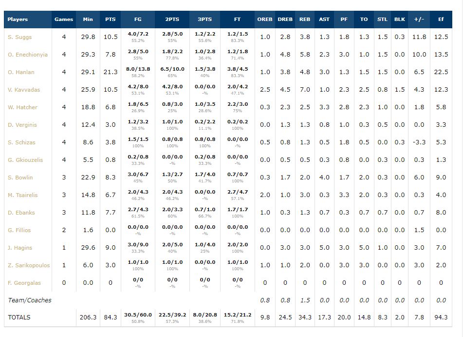 -Οι 21,8 ασίστ με τρεις παίκτες να έχουν πάνω ή κοντά στις 5 κατά μέσο όρο ανά αγώνα. Ο Νταν έχει 5,5, ο Μίλερ 5 και ο Ανγκολά 4,8 αντίστοιχα.