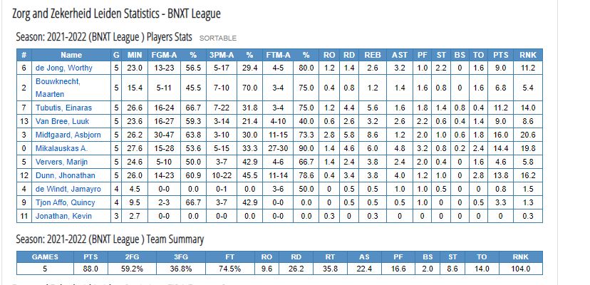 Μέχρι στιγμής πρώτος σκόρερ της ομάδας είναι ο Άσμπιορν Μίντγκααρντ με μέσο όρο 16 πόντους. Οι Λιθουανοί Μικαλάουσκας και Τουμπούτις έχουν 14,4 και 11,2 πόντους αντίστοιχα.