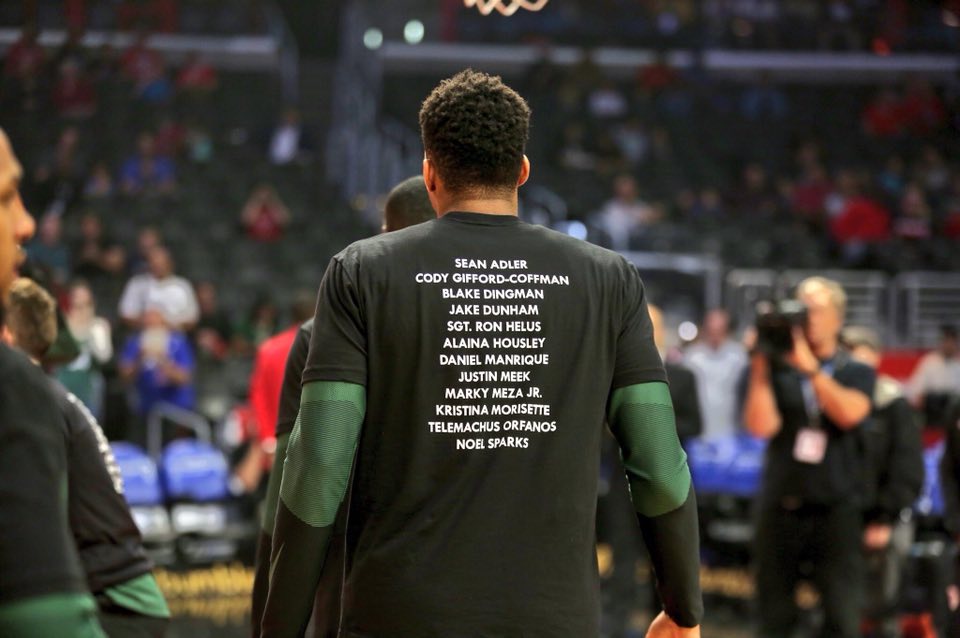 Να σημειωθεί πως οι παίκτες των δύο ομάδων κατά τη διάρκεια της προθέρμανσης εμφανίστηκαν στο παρκέ με μπλουζάκια, στα οποία ήταν γραμμένα τα ονόματα των θυμάτων της επίθεσης στο Θάουζανττ Όουκς της Καλιφόρνια. Σε αυτά υπήρχε η λέξη enough (αρκετά). Πριν το τζάμπολ κρατήθηκε και ενός λεπτού σιγή στη μνήμη των θυμάτων.