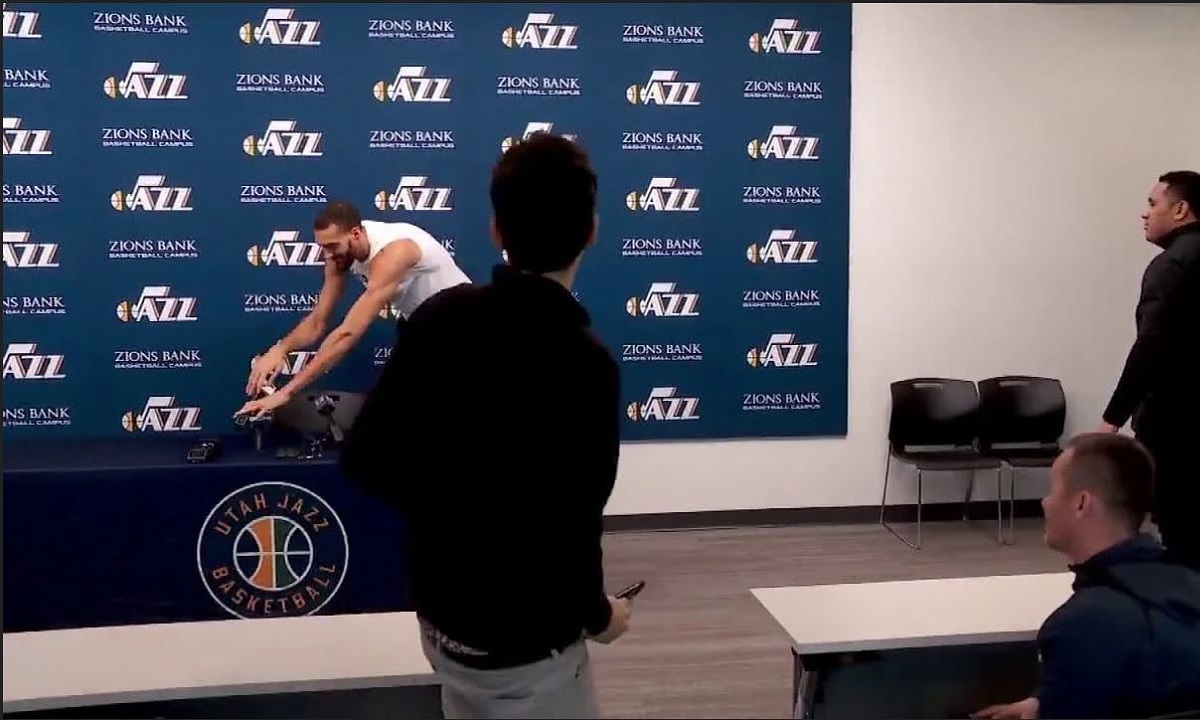 Που να ήξερε... Ο Ρούντι Γκομπέρ θέλησε να κάνει πλάκα με τον κορονοϊό. Και στη συνέντευξη Τύπου πριν από την αναμέτρηση της Γιούτα Τζαζ και των Οκλαχόμα Σίτι Θάντερ αποφάσισε να αγγίξει όλα τα μικρόφωνα και τα κασετοφωνάκια των δημοσιογράφων!