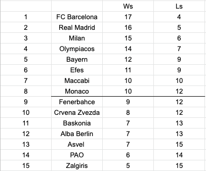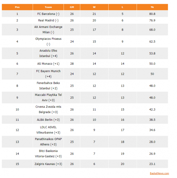 Βεβαίως υπάρχει μια διαφοροποίηση καθώς στη θέση 5, ανεβαίνει η Εφές όπως επίσης μπαίνει και στην οχτάδα η Φενέρμπαχτσε.