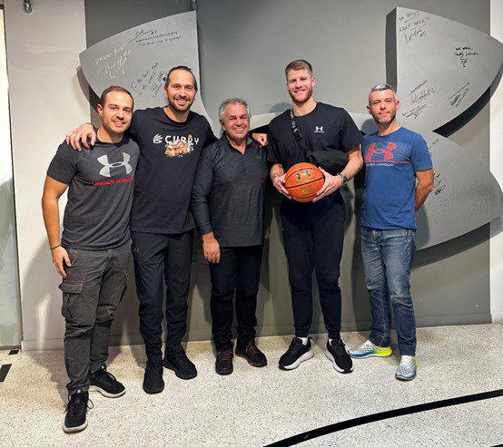 Αριστερά προς τα δεξιά: Θανάσης Κολοβός UA Brand Manager, Xρήστος Παχιουδάκης Fais Group Sports Marketing Manager, Δημήτρης Μαυρόπουλος UA Commercial Manager, Thomas Walkup, Κωνσταντίνος Νούσιας Fais Group Marketing Director