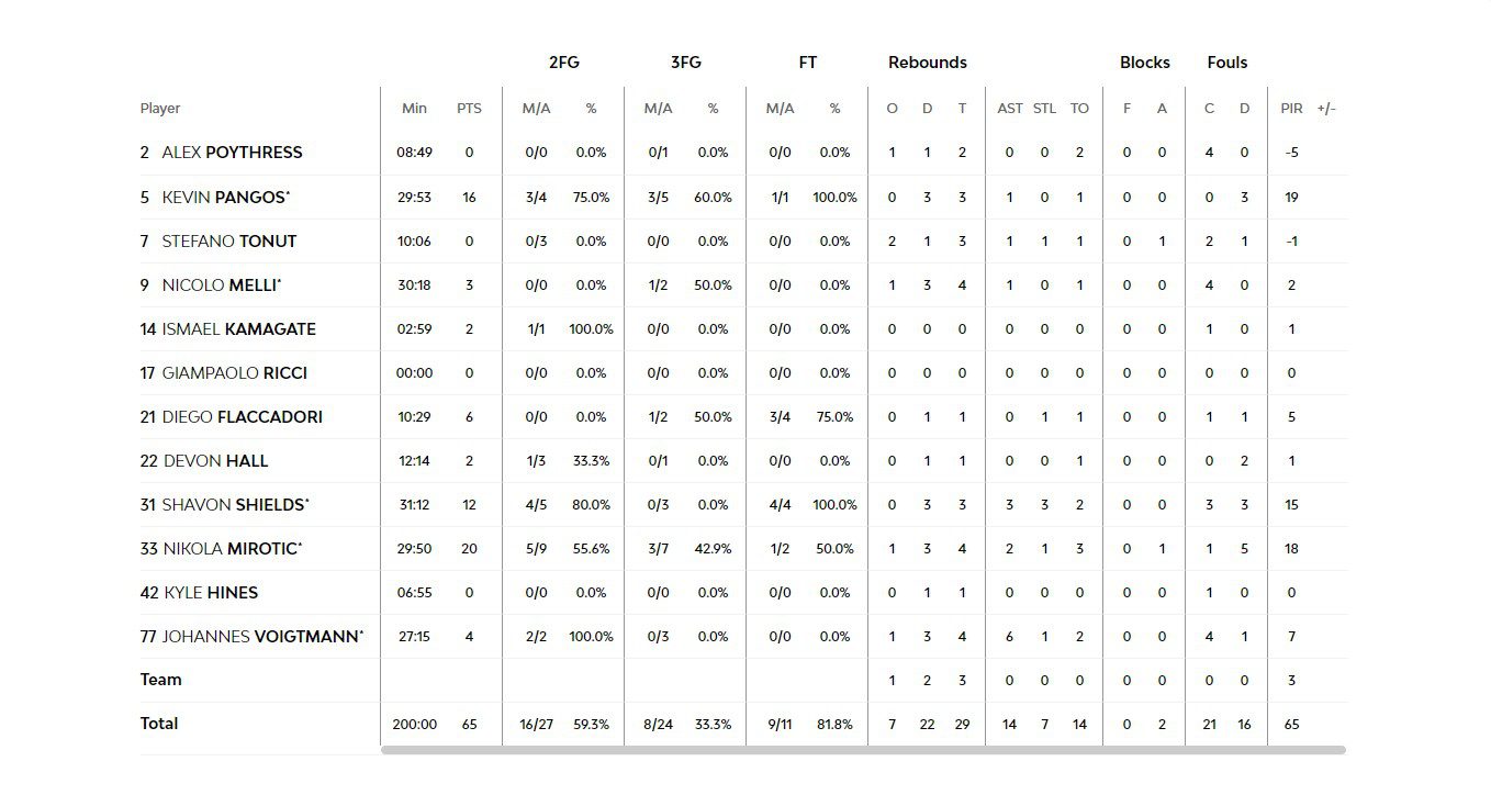 Ο Μιλουτίνοφ ήταν ο κορυφαίος για τους φιλοξενούμενους, έχοντας πετύχει 15 πόντους και μαζεύοντας πέντε ριμπάουντ.