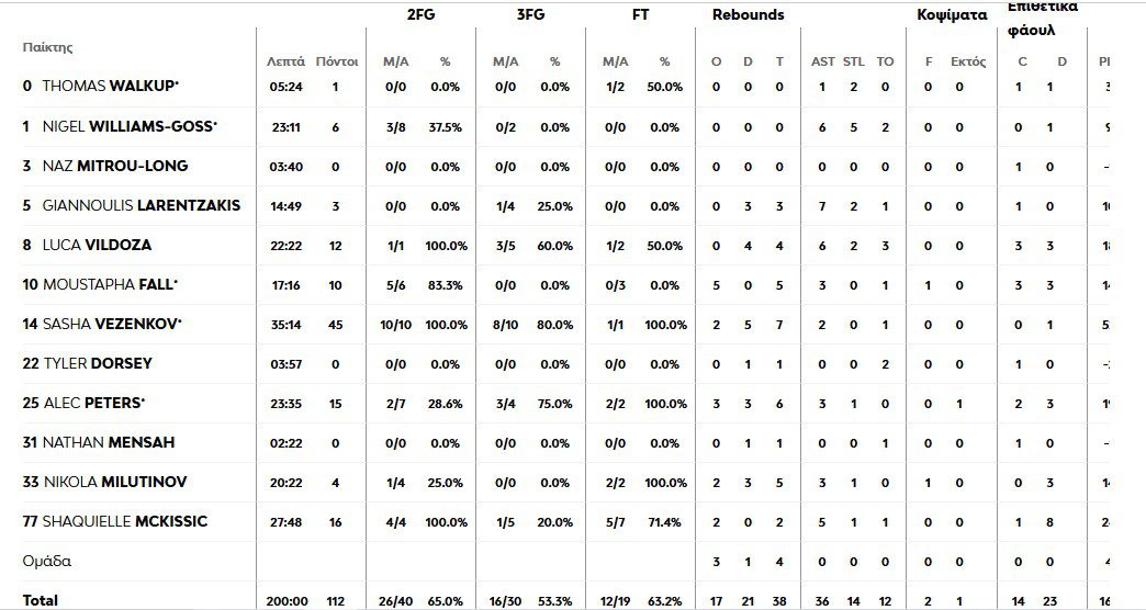 ΑΣΥΛΛΗΠΤΟΣ ο Βεζένκοφ ο οποίος σημείωσε ρεκόρ καριέρας στη EuroLeague με 45 πόντους! Συνολικά είχε 8/10 τρίποντα, 10/10 δίποντα 1/1 βολή, 7 ριμπάουντ σε 35 λεπτά. Ταυτόχρονα έσπασε και το ρεκόρ του στο rating με 52 πόντους ενώ ρεκόρ ήταν και τα νούμερα στα εύστοχα δίποντα και τρίποντα. Iαχές MVP ακούστηκαν από τους φιλάθλους!