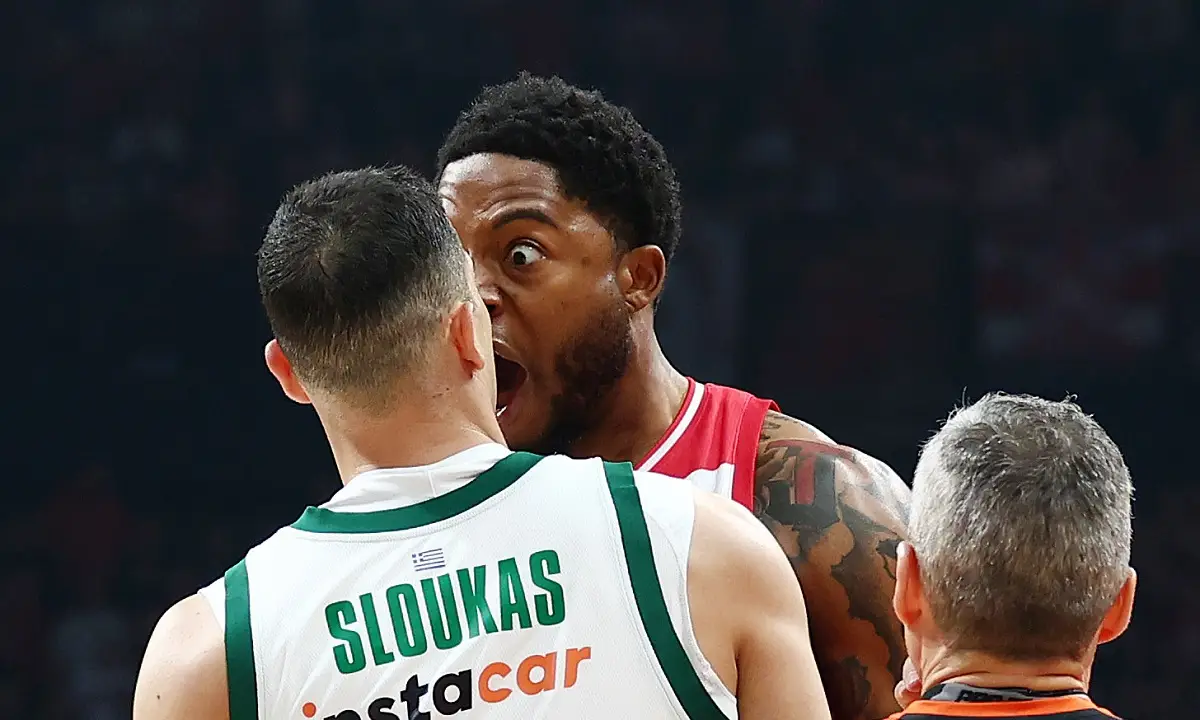 Έξαλλος έγινε ο Αμερικανός σέντερ του Ολυμπιακού με τον αρχηγό των «πρασίνων», όταν ο Σλούκας γύρισε και του… είπε κάτι για το απλωμένο χέρι του.