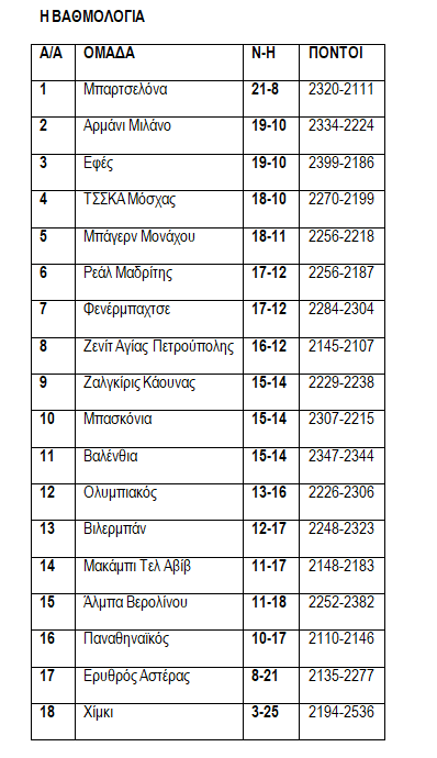 EUROLEAGUE– KANONIKH ΠΕΡΙΟΔΟΣ