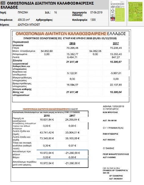 Με μεγάλη χαρά διαβάσαμε χθες (05/06) τον επίσημα δημοσιευμένο ισολογισμό της ΟΔΚΕ, από τον οποίο προκύπτει η χρηστή διοίκηση, μιας και το αποτέλεσμα της περιόδου ήταν θετικό σε σχέση με το 2017. Η ΟΔΚΕ επέλεξε να δημοσιεύσει τον ισολογισμό στην εφημερίδα «Πράσινη». #OlympiacosBC pic.twitter.com/ea94wtl5g9