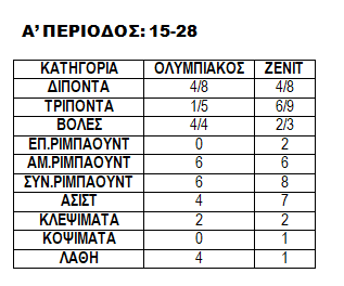 Βλέπετε στην πρώτη περίοδο τι ακριβώς συνέβη. Με την Ζενίτ να έχει 6/9 τρίποντα αλλά και 7 ασίστ για μόλις ένα λάθος. Ο Ολυμπιακός είχε 1/5 τρίποντα και 4 ασίστ για τέσσερα λάθη