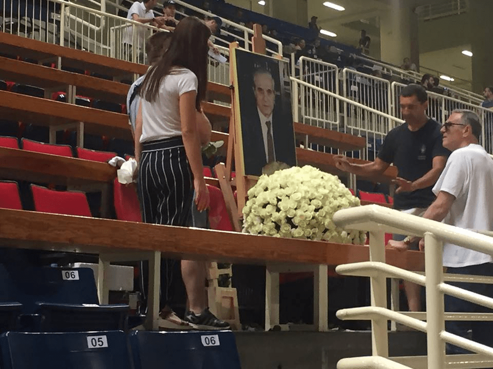 Δύο ώρες πριν από την έναρξη του αγώνα με τον Ολυμπιακό, ένα μεγάλο πορτραίτο του και μία ανθοδέσμη τοποθετήθηκαν στη θέση που συνήθιζε να κάθεται ο Γιαννακόπουλος!