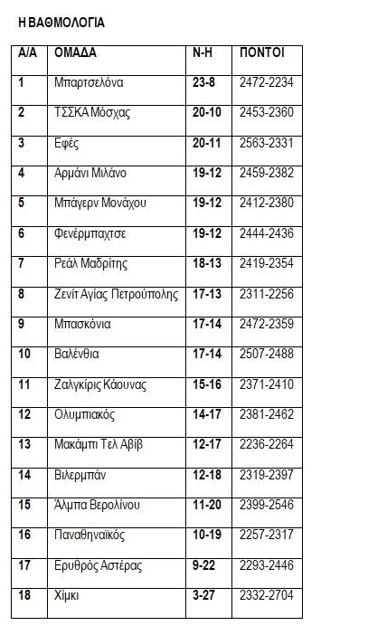 EUROLEAGUE– KANONIKH ΠΕΡΙΟΔΟΣ