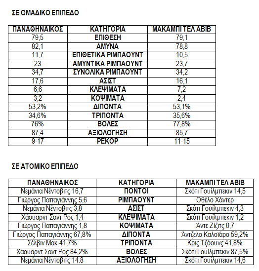 -Στην επίθεση βρίσκονται στα ίδια επίπεδα περίπου ενώ αμυντικά η Μακάμπι υπερτερεί