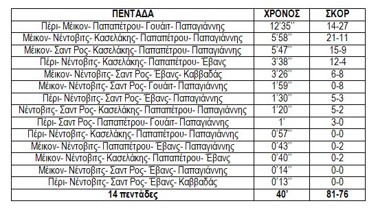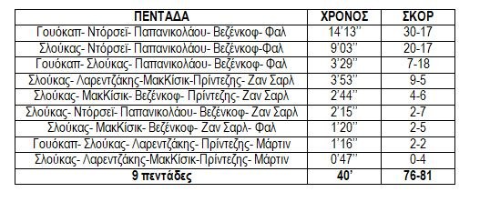 Η αρχική πεντάδα ήταν εκείνη που είχε το χειρότερο επιμέρους σκορ (άρχισε και στο δεύτερο ημίχρονο).
