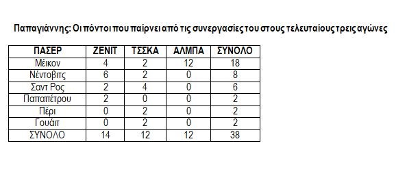Παρεμπιπτόντως στους προηγούμενους 11 αγώνες ο Παπαγιάννης είχε κατά μέσο όρο 7,9 πόντουςμε 57,1% στα δίποντα (40/70).