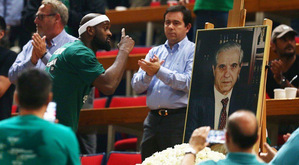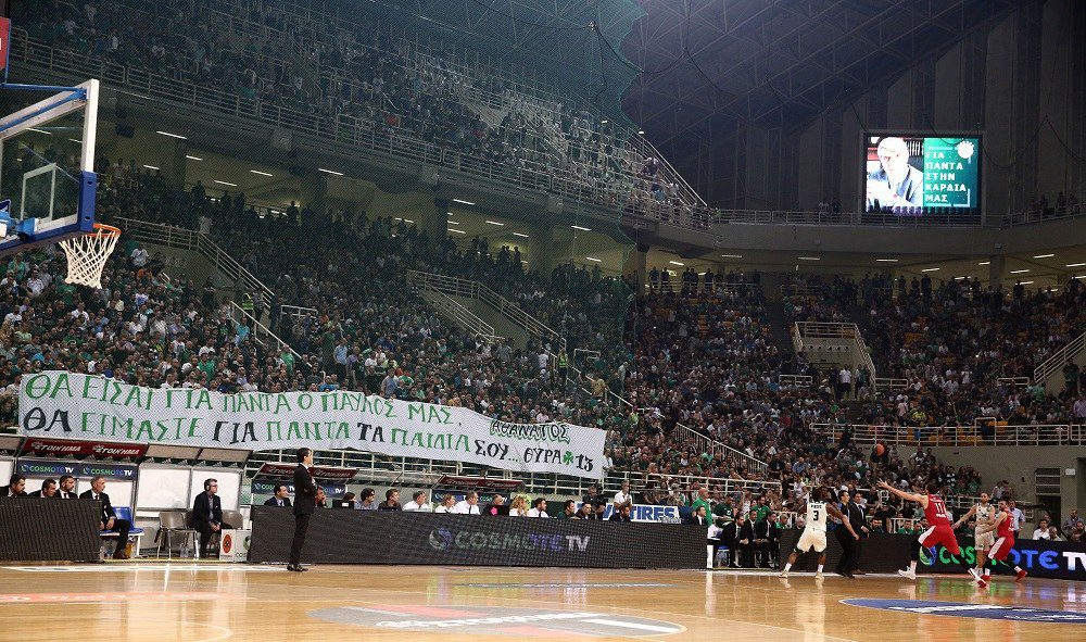 Η φωτογραφία του ιστορικού παράγοντα της «πράσινης» ΚΑΕ τοποθετήθηκε στη θέση που συνήθιζε να κάθεται. Ο Τσάβι Πασκουάλ, το σταφ του και οι παίκτες του κατευθύνθηκαν προς τα VIP για να τιμήσουν τον εκλιπόντα, την ώρα που ο όρθιος κόσμος στο ΟΑΚΑ τραγουδούσε ρυθμικά: «Παύλο Θεέ, για πάντα ανάμεσά μας, μια ζωή θα είσαι μέσα στην καρδιά μας.
