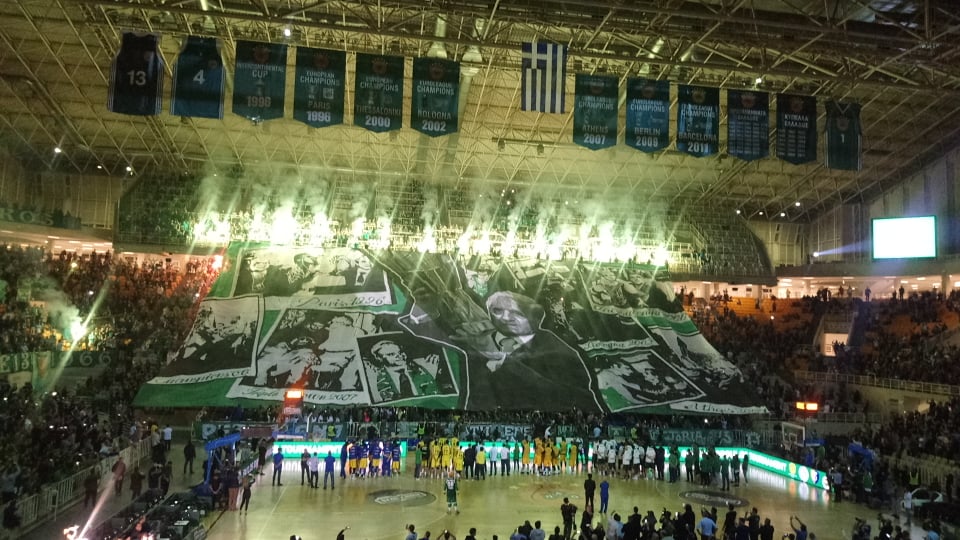 Οι οπαδοί του Παναθηναϊκού άνοιξαν ένα τεράστιο όσο κι εντυπωσιακό κορεό προκειμένου να τιμήσουν τον Παύλο Γιαννακόπουλο