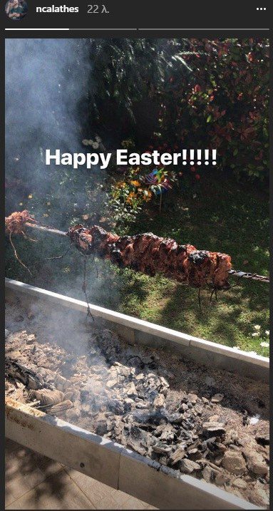 Βάζοντας λοιπόν το αρνί στη σούβλα, ο διεθνής γκαρντ ευχήθηκε καλό Πάσχα, στο story που ανέβασε στον προσωπικό του λογαριασμό.