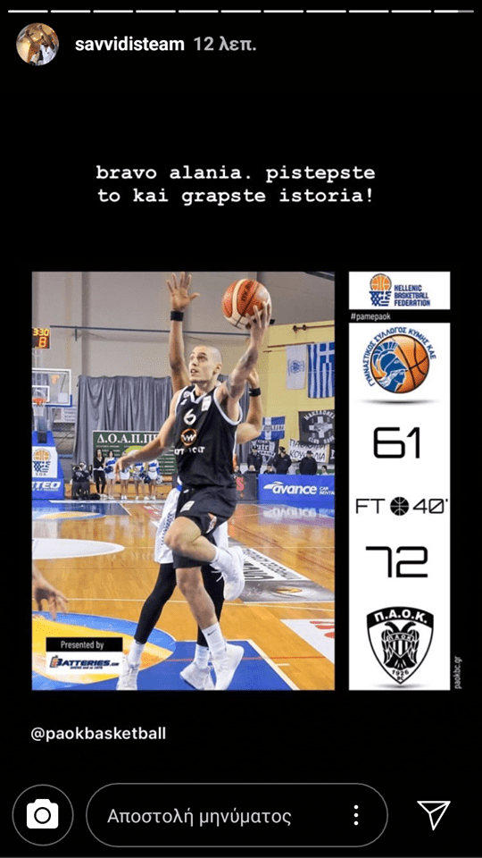 Ο γιος του μεγαλομετόχου της ΠΑΕ, Γιώργος Σαββίδης, συνεχάρη την μπασκετική ομάδα και τους κάλεσε να γράψουν ιστορία.