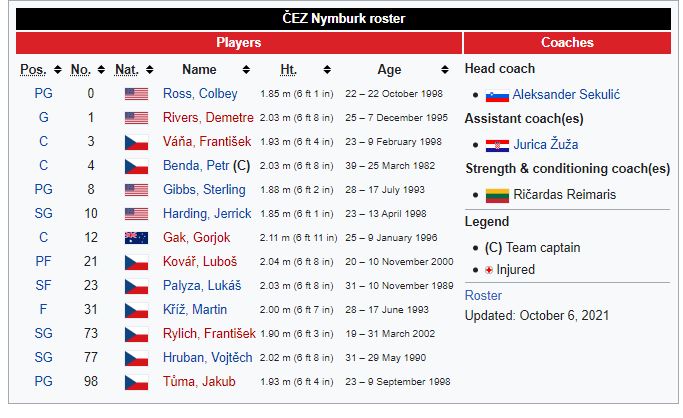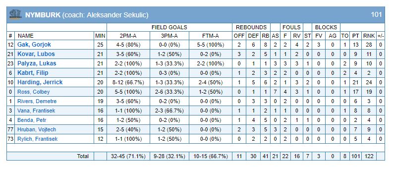 Η Νίμπουρκ προηγείται βέβαια στο πρωτάθλημα της Τσεχίας, αήττητη μετά τις 6 αγωνιστικές. Στον τελευταίο της αγώνα επικράτησε 101-74 εκτός έδρας της Λάμπεμ.