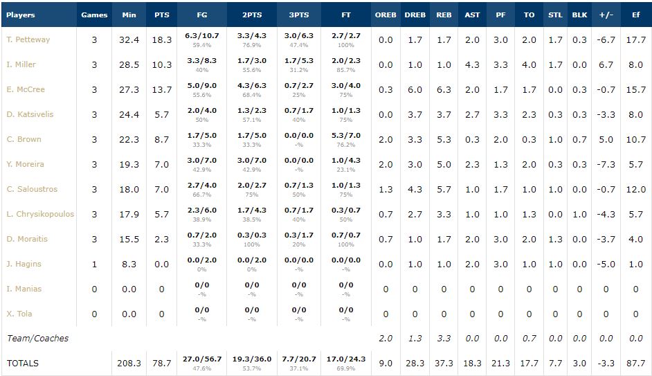 Ο Τεράν Πέτεγουεϊ είναι ο πλέον παραγωγικός παίκτης του Περιστερίου στους τρεις αγώνες στη διοργάνωση. Με 18,3 πόντους και ποσοστό 47,4% στα τρίποντα κάνει εξαιρετική διοργάνωση. Ο Έρικ ΜακΚρι που ευστόχησε στο τελευταίο σουτ στη Θεσσαλονίκη επίσης είναι παραγωγικός (13,7 πόντους και 6,3 ριμπάουντ).