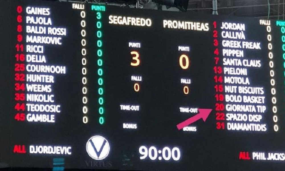 Συγκεκριμένα, λίγο πριν το τζάμπολ, ο ηλεκτρονικός πίνακας του γηπέδου εμφάνισε μια απίστευτη σύνθεση των Πατρινών.