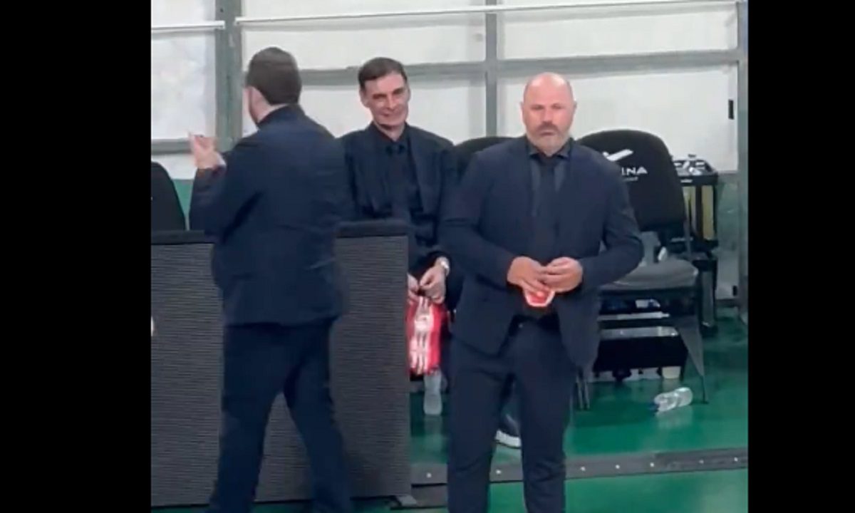 Θυμίζουμε οτι πριν μιλήσει στο μικρόφωνο, ο Γιαννακόπουλος, είχε κάνει χειραψία με τον Μπαρτζώκα, καθώς κατέβηκε να χαιρετήσει την αποστολή των ερυθρόλευκων.