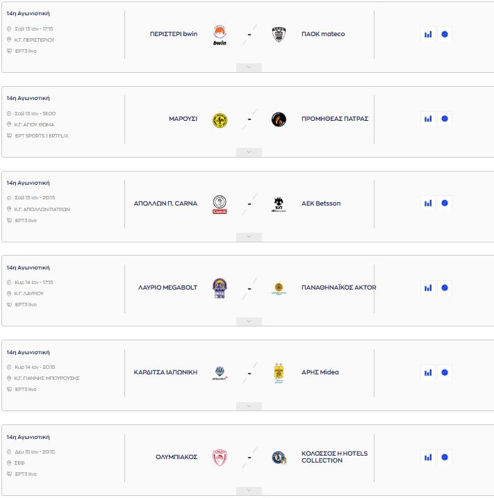 Βαθμολογία Basket League: Με τρία παιχνίδια ολοκληρώθηκε η 13η αγωνιστική του πρωταθλήματος. Ο Ολυμπιακός νίκησε στα Λιόσια την ΑΕΚ με 92-80, ο Παναθηναϊκός το Περιστέρι στο «Νίκος Γκάλης» με 90-75 και ο Κολοσσός στη Ρόδο το Λαύριο με 88-73.
