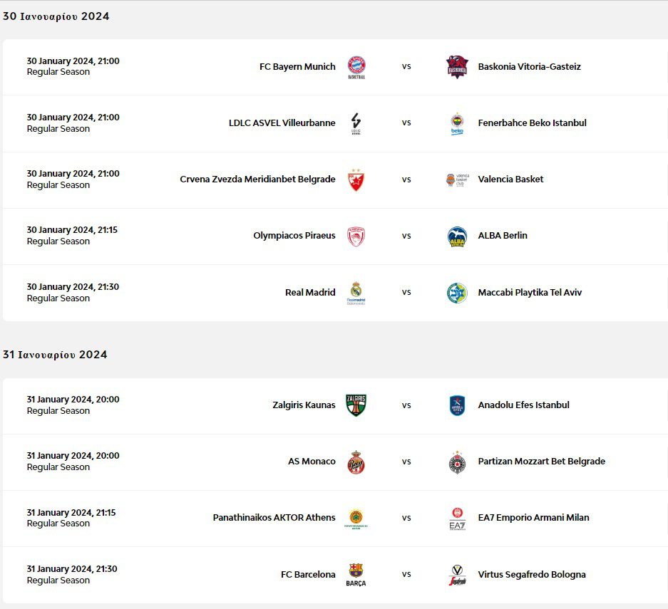 Τα αποτελέσματα της 23ης αγωνιστικής της Euroleague