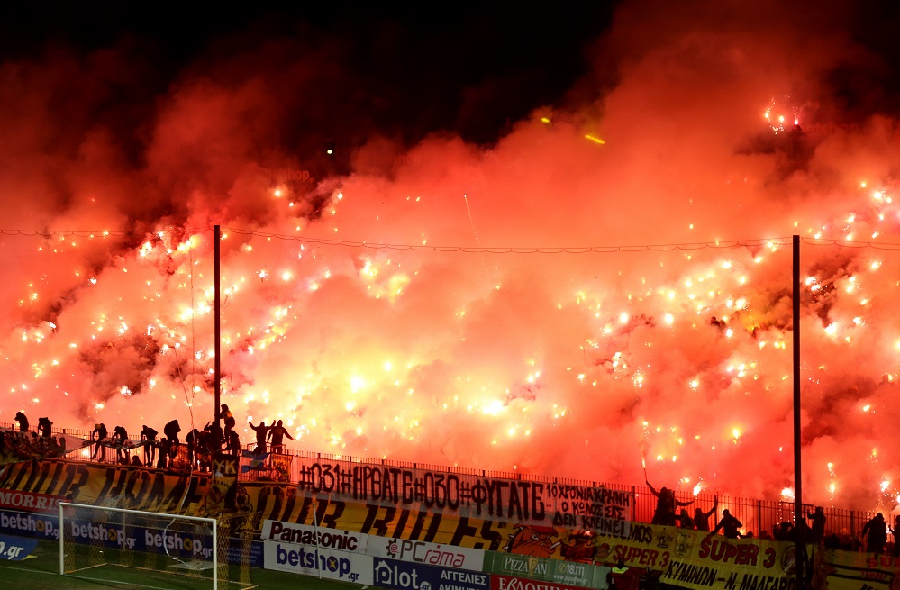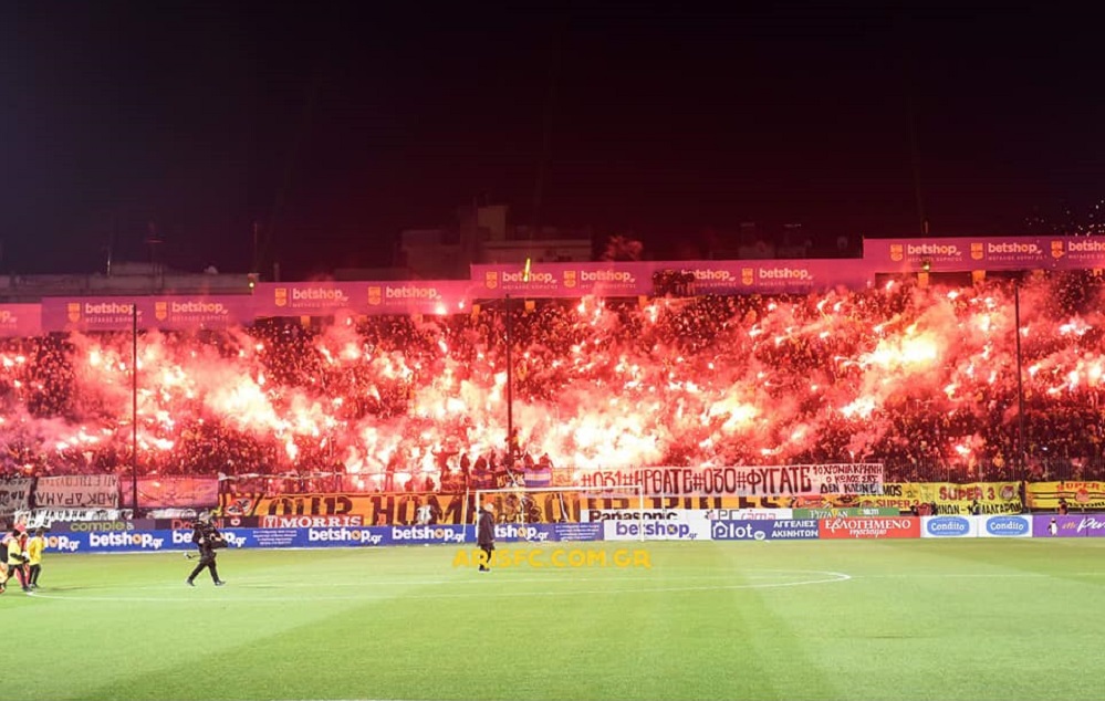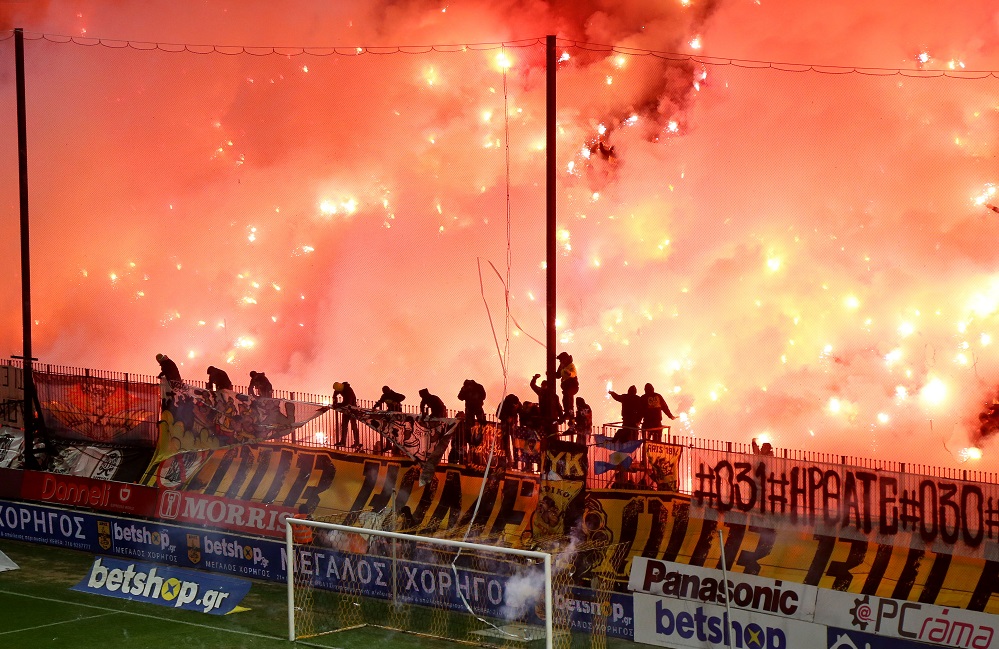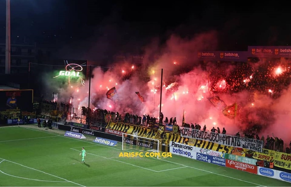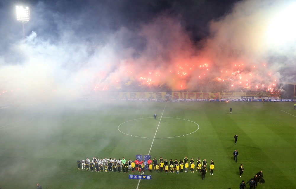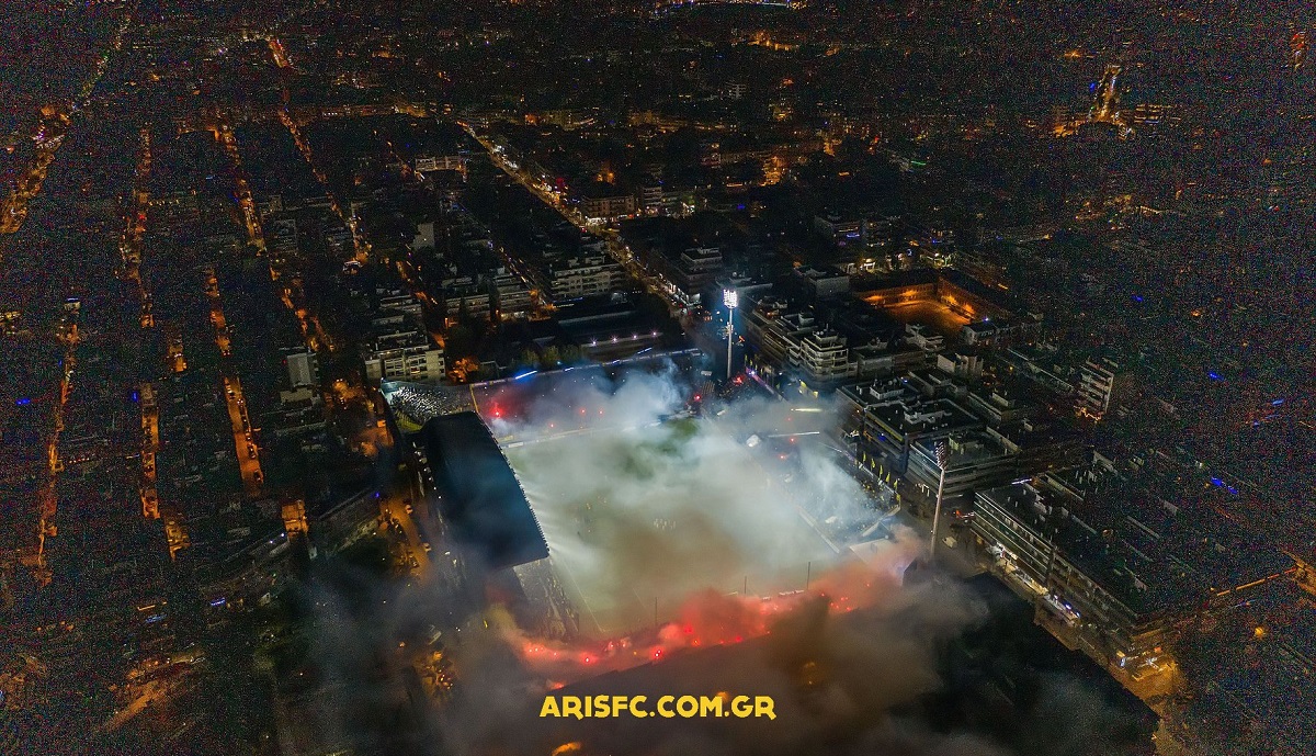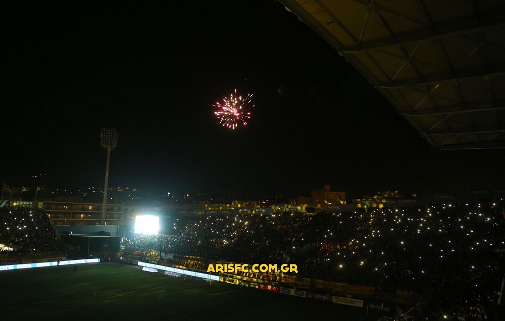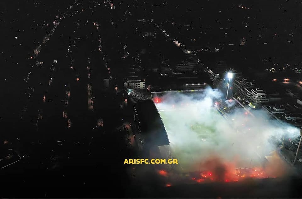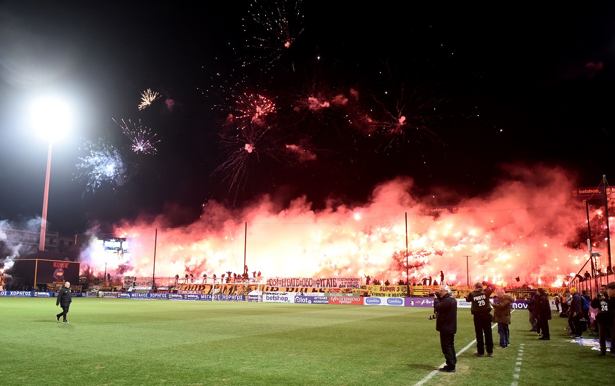 Ατμόσφαιρα γιορτινή, φαντασμαγορική (τα σβηστά φώτα ήταν πολύ όμορφη στιγμή), με πολλά παιδιά στις κερκίδες και κυρίως ΧΩΡΙΣ ΕΚΤΡΟΠΑ. Ενα Βικελίδης «αγριεμένο» που έκανε τη… νύχτα μέρα με τα εκατοντάδες καπνογόνα που άναβαν σε κάθε ευκαιρία.
