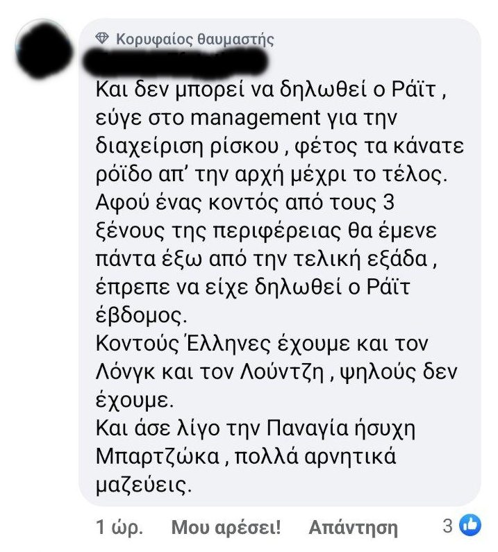Οι φίλαθλοι του το λένε χωρίς περιστροφές πλέον: «πάρ’το αλλιώς». Ας σεβαστεί επιτέλους την πίστη των φιλάθλων του Ολυμπιακού που ευλαβούνται τα θεία, αλλά και όλων των Ελλήνων ορθοδόξων. Ο κόσμος του Ολυμπιακού τον εκτιμά απεριόριστα ως προπονητή, καιρός να τον εκτιμήσει και ως άνθρωπο.