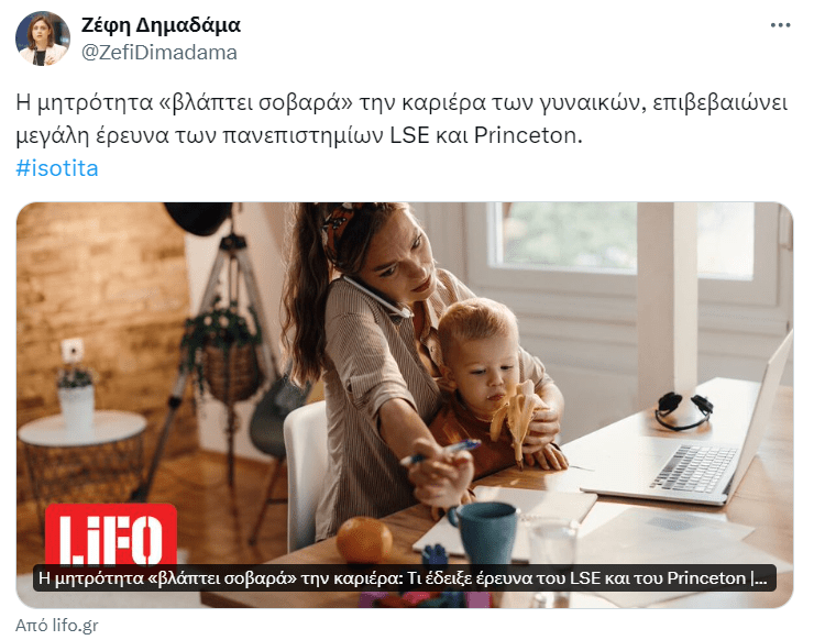 ΝΤΡΟΠΗ: Το υπουργείο (καταστροφής της) Οικογένειας προειδοποιεί – «Η μητρότητα βλάπτει σοβαρά την καριέρα των γυναικών»!