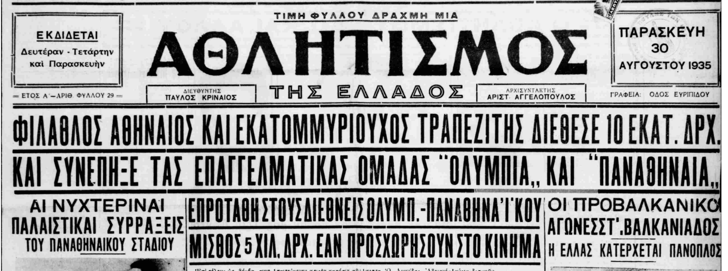 Βρισκόμαστε πίσω στον Αύγουστο του 1935 και όσοι αγαπούσαν το ποδόσφαιρο (καθόλου λίγοι) διάβασαν μια απίθανη ιστορία στην εφημερίδα «ΑΘΛΗΤΙΣΜΟΣ».