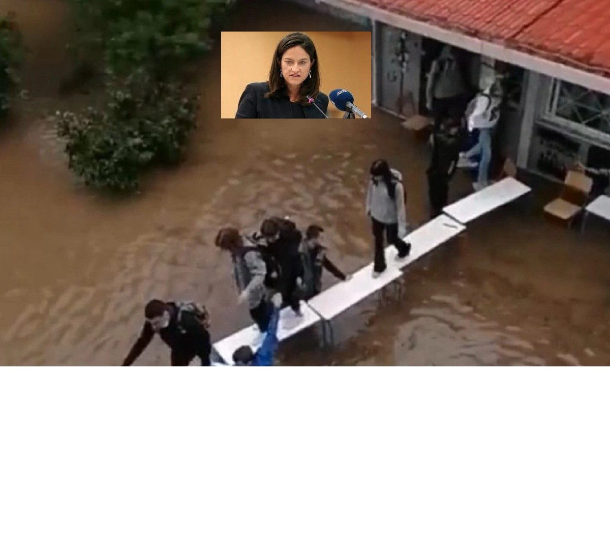 Οι εκπαιδευτικοί εσχάτως έγιναν και… ναυαγοσώστες! Στο σχολείο της Νέας Φιλαδέλφειας όπου μαθητές κι εκπαιδευτικοί έφτιαξαν γέφυρα από θρανία για να ξεφύγουν από της πλημμύρες. Α ναι, πριν ξεφύγουν έκαναν μάθημα σε… κοντέινερ!