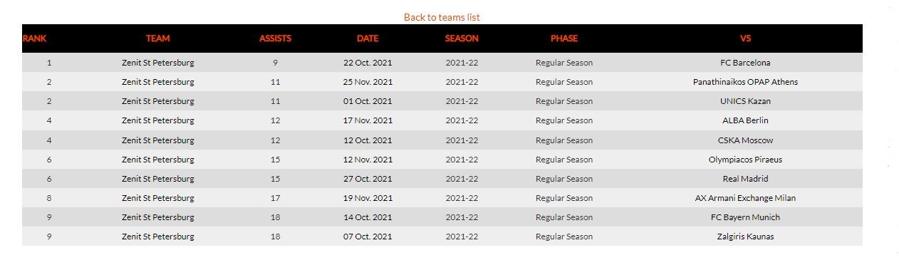 Οι 11 ασίστ κόντρα στον Παναθηναϊκό είναι οι λιγότερες που έχει μοιράσει φέτος η Ζενίτ με εξαίρεση τον αγώνα στην Βαρκελώνη που είχε 9