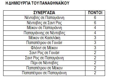 Στον ίδιο πίνακα φαίνεται ότι ο Νέντοβιτς ουσιαστικά πέτυχε 30 πόντους αφού εκτός των 18 δικών του είχε άλλους 12 από ασίστ σε Παπαγιάννη και Σαντ Ρος.