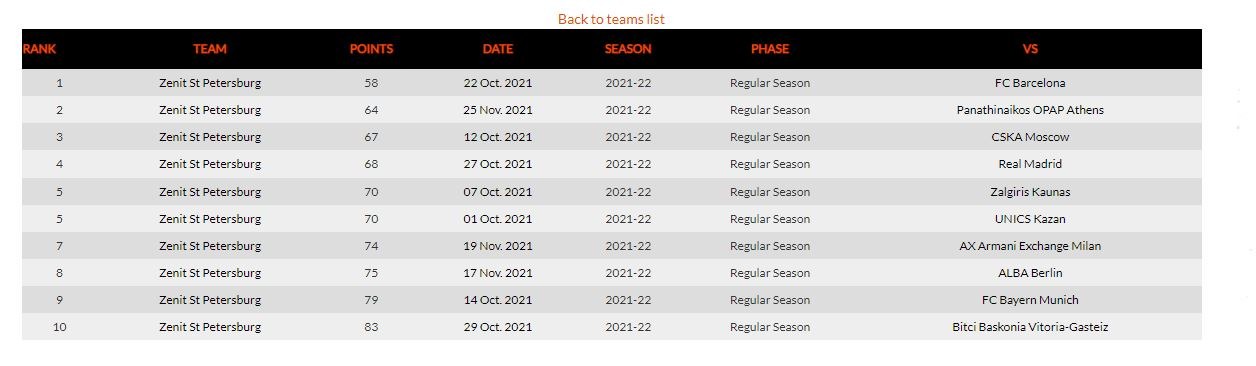 Καμία άλλη ομάδα δεν έχει φιλοδωρήσει με 6 τάπες σε έναν αγώνα την Ζενίτ. Μόνο η Άλμπα είχε 5. Όπως και το 58 στην αξιολόγηση είναι η δεύτερη χειρότερη επίδοση μετά το 56 στην Βαρκελώνη.