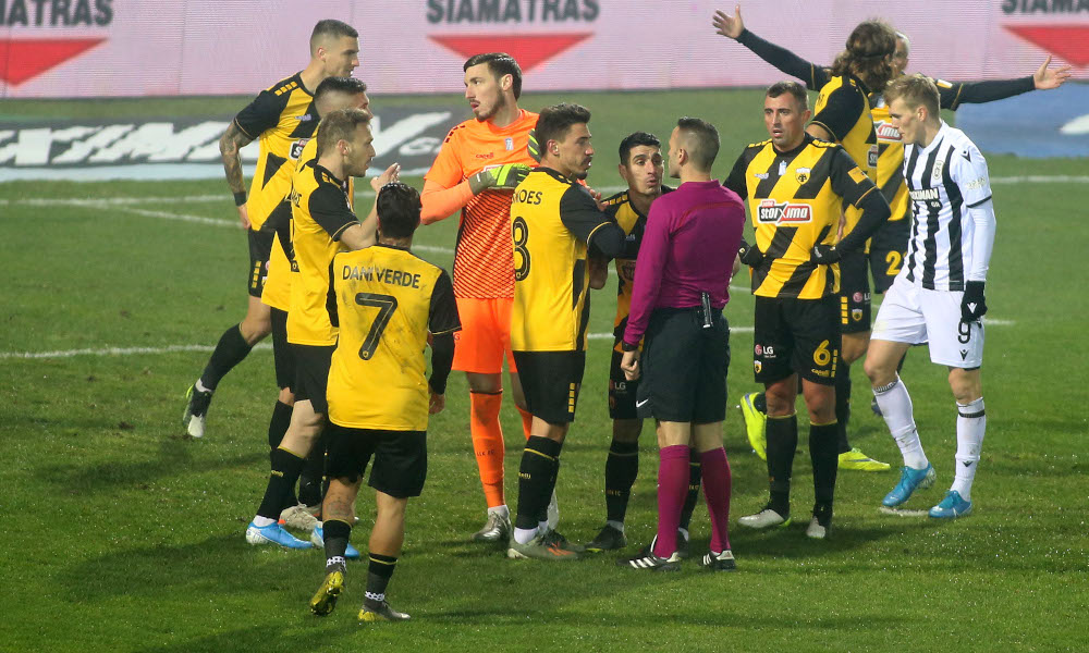 Η ΑΕΚ «καθαρίστηκε» στεγνά στην Τούμπα, διότι έπρεπε να κερδίσει ο ΠΑΟΚ. Και επίσης η ΑΕΚ διαμαρτύρεται για τις φάσεις με το χέρι του Βαρέλα και την ανατροπή του Κρίστιτσιτς. Φάσεις που δείχνουν παράβαση στα ριπλέι (στην φάση του πέναλτι όμως ψάχναμε τα ριπλέι και δεν τα βρίσκαμε), αλλά ξέρω ότι δεν πήγε καν στο VAR ξανά ο Γκρίνφελντ να τις δει. Να δει μήπως υπάρχει παράβαση, λόγω αμφιβολίας.