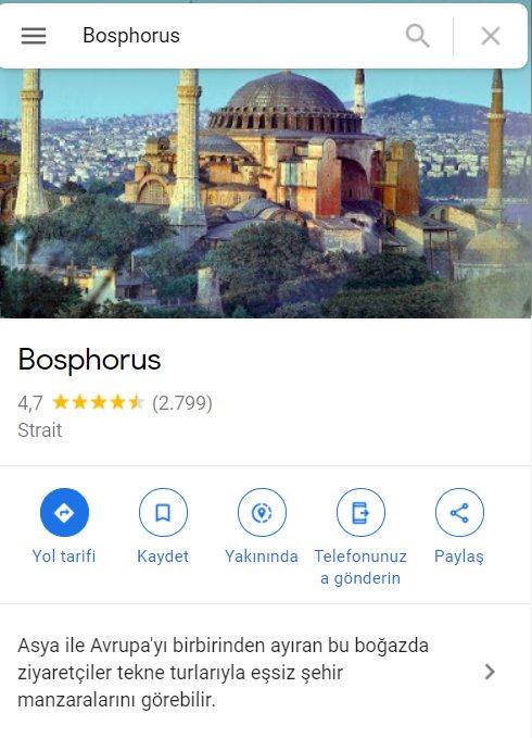 «Η Google άλλαξε τα ονόματα των Çanakkale Boğazı και İstanbul Boğazıμ και έδωσε τα Ελληνικά ονόματατα Bosphorus and Dardanelles στο χάρτη».